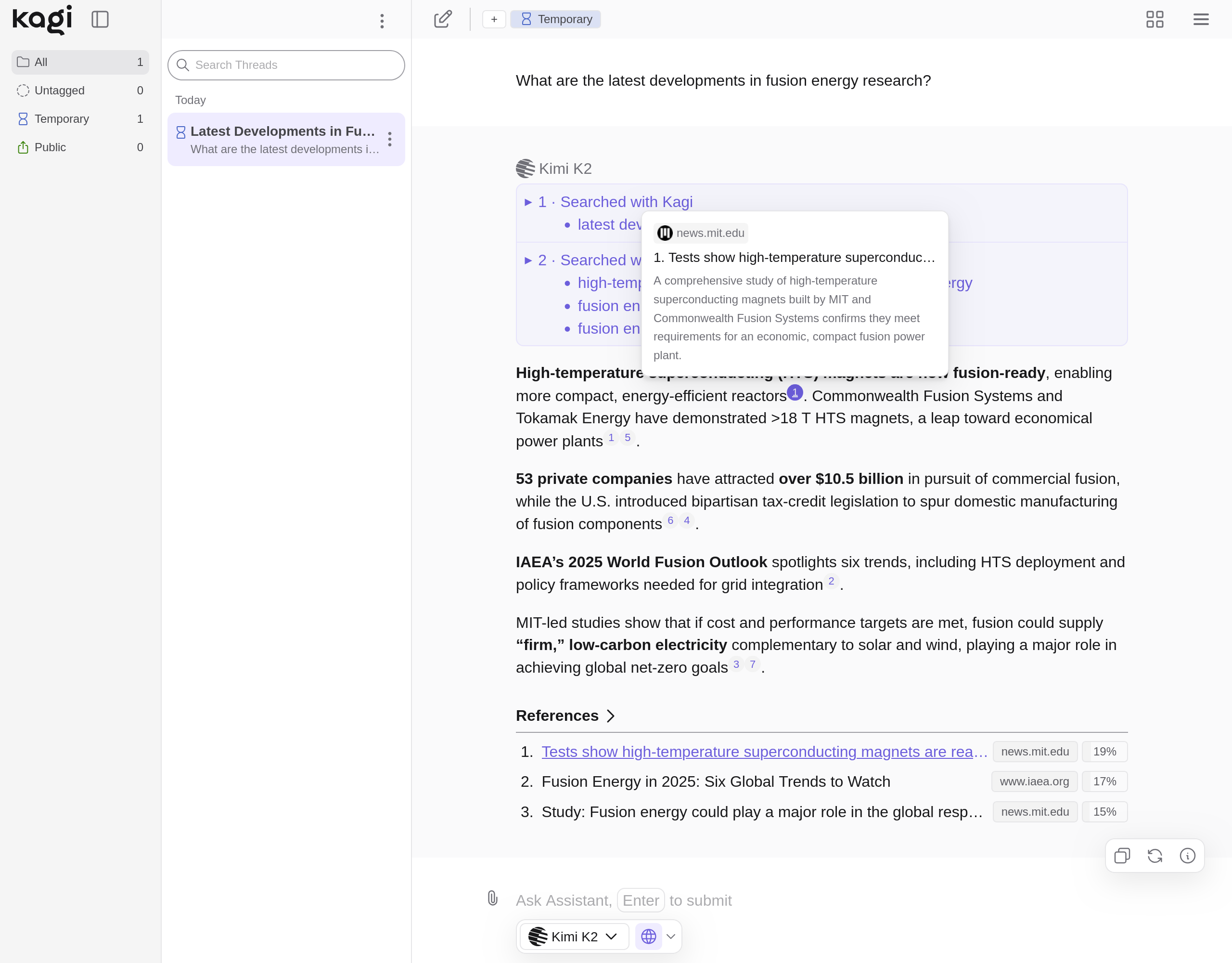 With Kagi, there is no incentive alignment issue that an advertising business model can otherwise create. That’s why you can trust the results and sources in our chatbot.